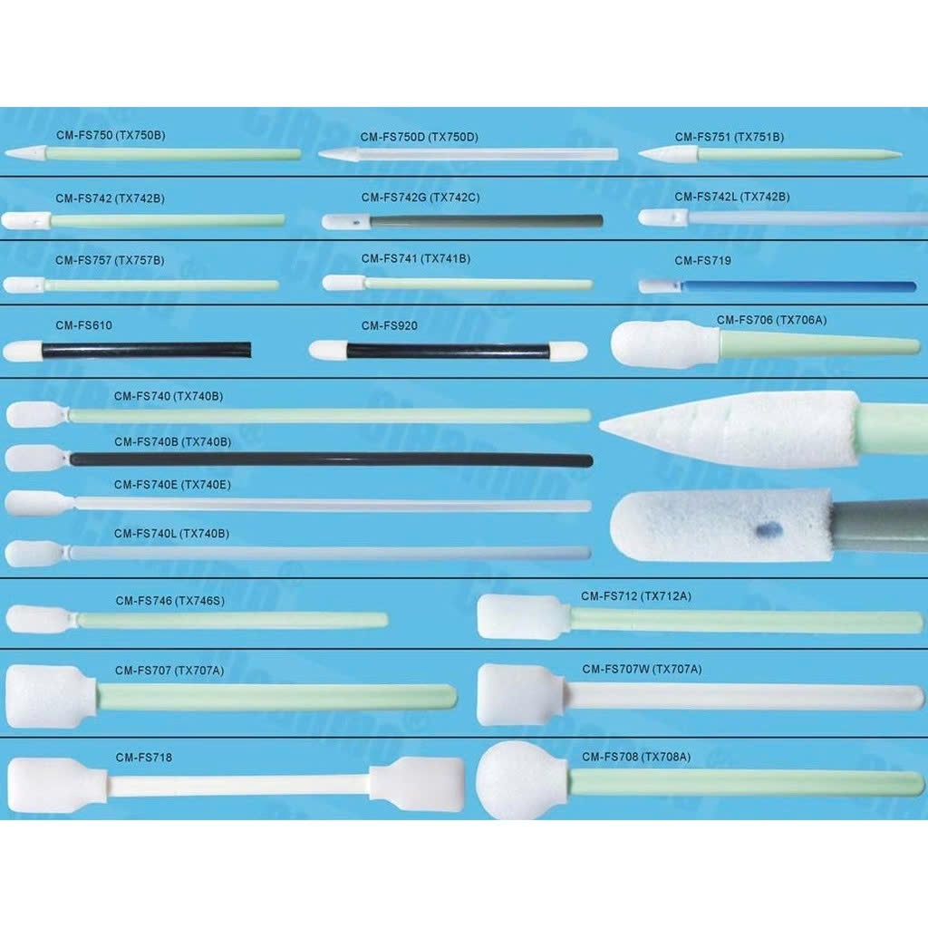 Tăm bông phòng sạch bông giấy dính trong phòng sạch để làm sạch linh kiện điện tử. Tăm bông không xơ vải có hai đầu mỏng có lỗ thông hơi, đặc biệt được sử dụng để làm sạch điện tử. Đầu bông mềm mại và tinh khiết có thể bảo vệ bề mặt và các thành phần mỏng manh. Có thể dễ dàng loại bỏ bụi bẩn, cặn bẩn bám trên khu vực khó tiếp cận.